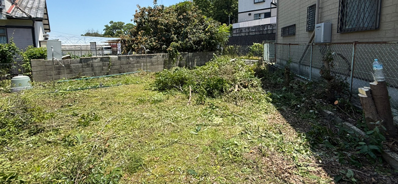 伸び放題になってしまった草や芝を、機械を用いてきれいに刈り込み、お庭をすっきりと仕上げます。立ち会い不要で遠方からのご依頼も可能ですので、お気軽にご相談ください。