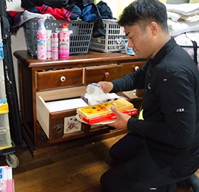 ⽣前整理の実績が豊富なスタッフが、ご本⼈やご家族のお気持ちに寄り添いながら、丁寧・確実に作業させていただきます。