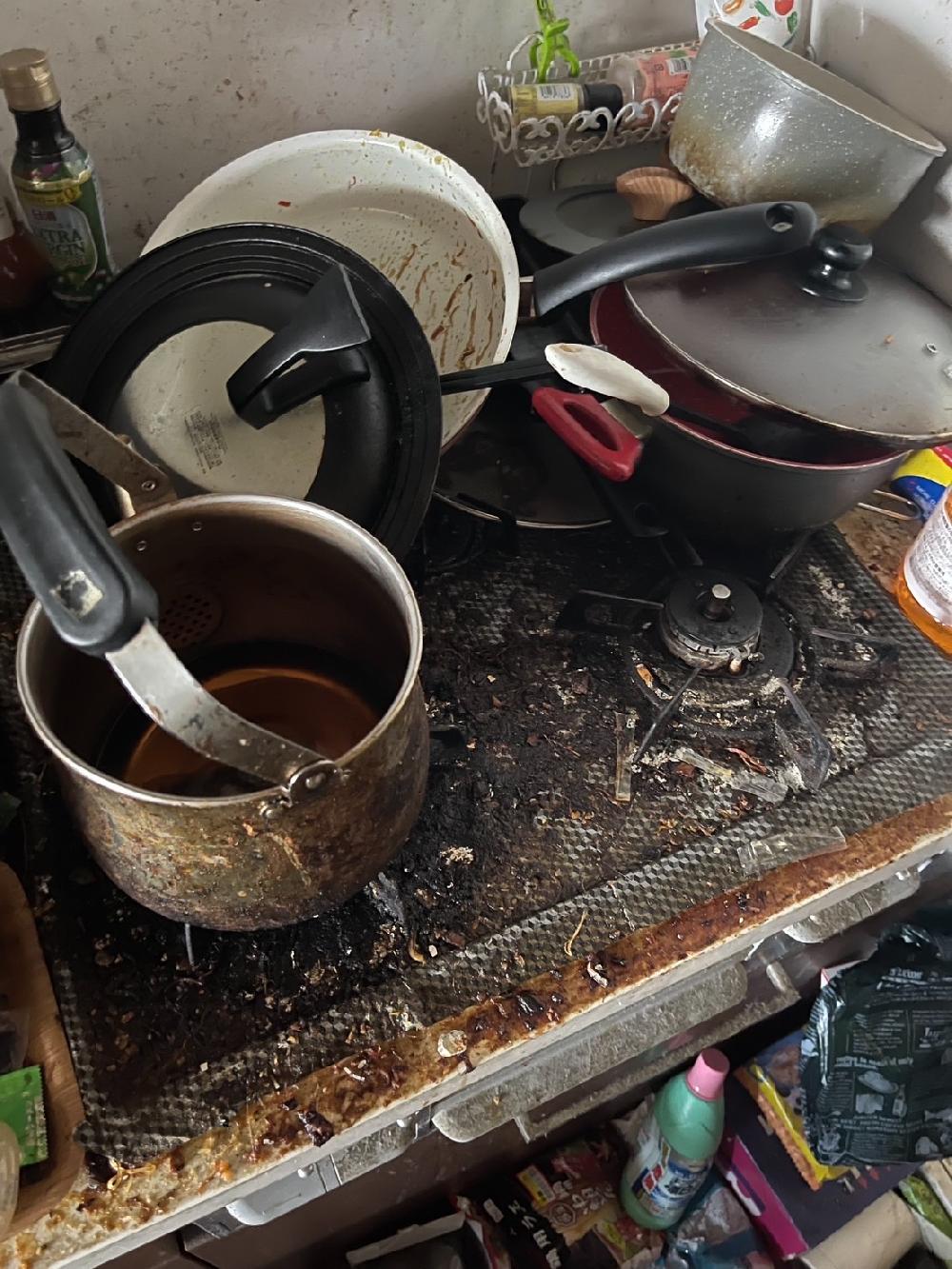 大阪市の方からキッチンのクリーニングをお願いしたい」というご依頼をいただきました。お客様は、「自分で掃除しても落ちないコンロ周りや換気扇、壁や床の油汚れが気になる」とのことでした。