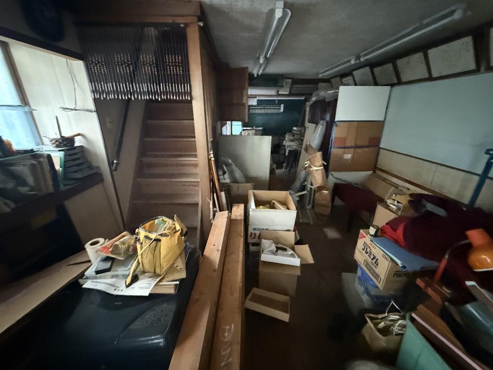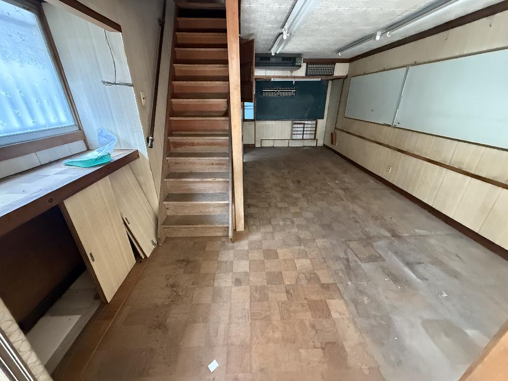 長い間人の出入りがなかったため、室内にはホコリが積もり、湿気による傷みも見られる状態でした。特に1階の教室部分には、算盤や教材、机や椅子などがそのまま残されており、当時の様子がそのまま残っている印象でした。