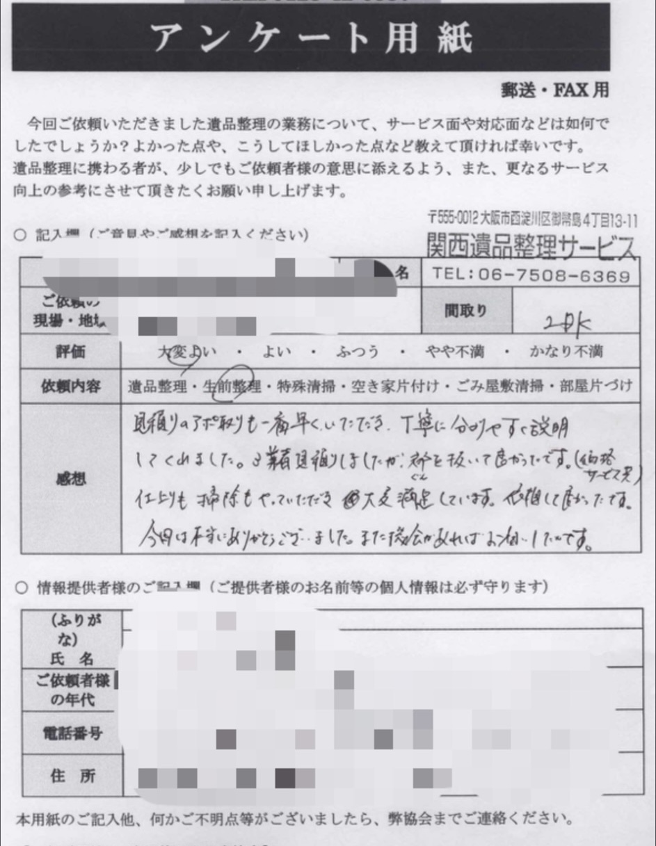 兵庫県神戸市マンション遺品整理作業事例|作業事例・お客様の声|関西遺品整理サービス