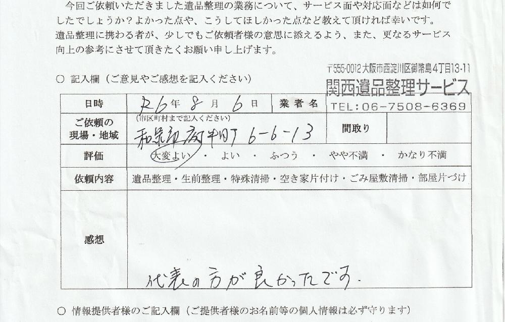 遺品整理を利用された大阪市鶴見区のお客様の事例|作業事例・お客様の声|関西遺品整理サービス