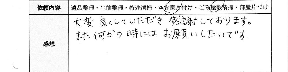 大変よくしていただき感謝しております。また何かのときにはお願いしたいです。