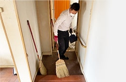 専門知識と高い技術を持った「事件現場特殊清掃士」を始めとする専門スタッフが、お部屋の臭いをスピーディに取り除きます。さらに残置物もきれいさっぱりすべて回収いたします。